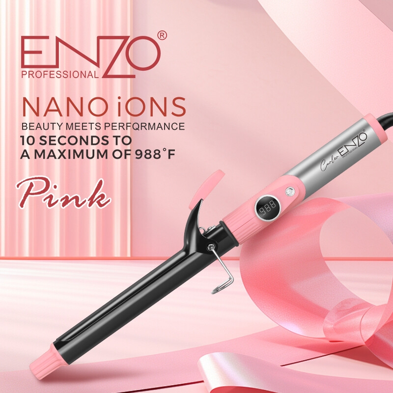 ENZO outils de coiffure professionnels en céramique rotatif rose bigoudi négatif ionique 25MM fer à friser pivotant
