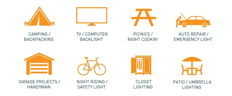 Large Choix d’application : La bande lumineuse LED peut être utilisée à la fois en intérieur et en extérieur, tels que le camping, la randonnée, les pique-niques, la cuisine de nuit, les projets de garage. Il peut également être utilisé comme lumière de tente, lumière de randonnée. Un outil de sécurité d'urgence au cas où votre voiture tombe en panne après le coucher du soleil, ou si vous le portez lorsque vous faites du vélo en ville ; Guirlande d'éclairage extérieur, elle est idéale pour les jardins, balcons, murs, etc.