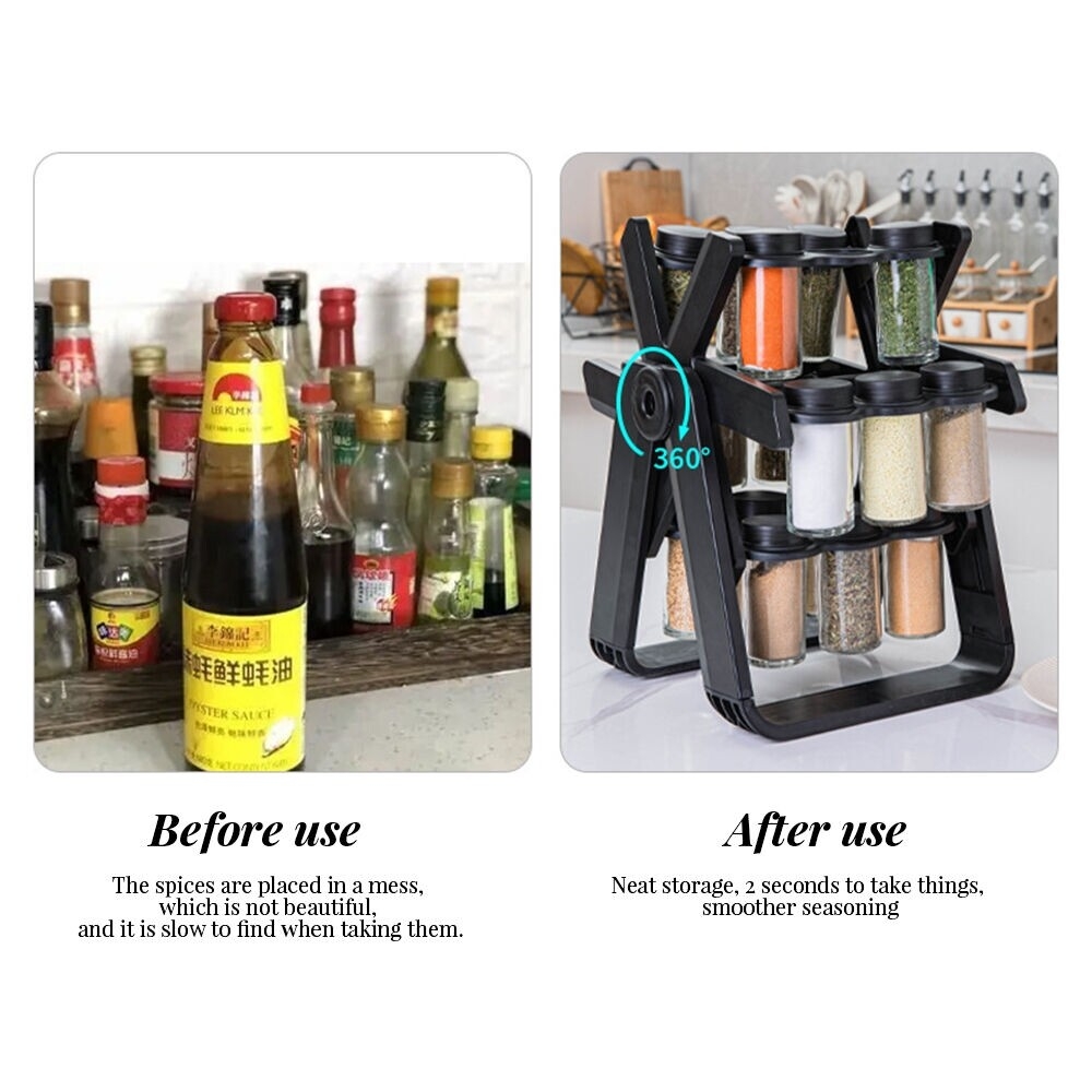 3.18 برطمان توابل زجاجي: يحتوي الرف على 18 برطمان توابل زجاجي لحمل 16 توابل مختلفة مثل الملح والفلفل والزعتر والبابريكا وإكليل الجبل وما إلى ذلك.
