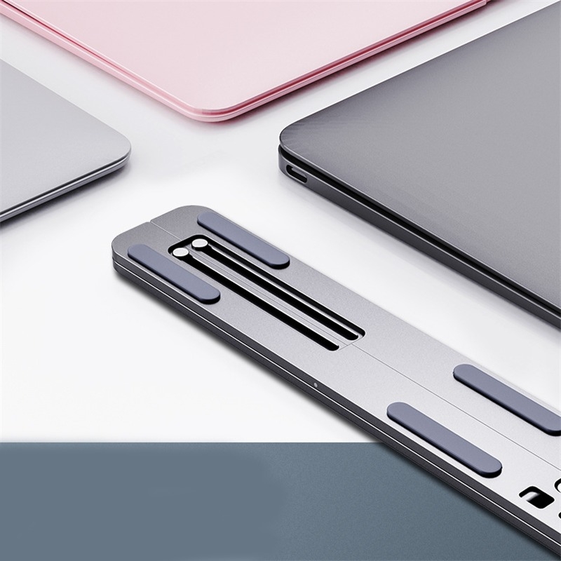 · DISSIPATION DE CHALEUR : Le matériau en alliage d'aluminium peut absorber et évacuer la chaleur facilement. L'angle d'inclinaison vers l'avant et la conception ouverte offrent une meilleure ventilation et plus de circulation d'air pour refroidir votre laptop pendant le fonctionnement.